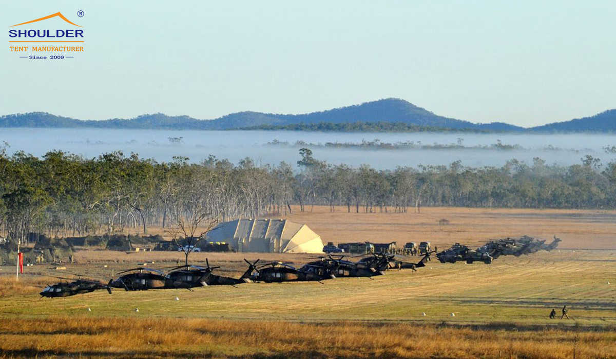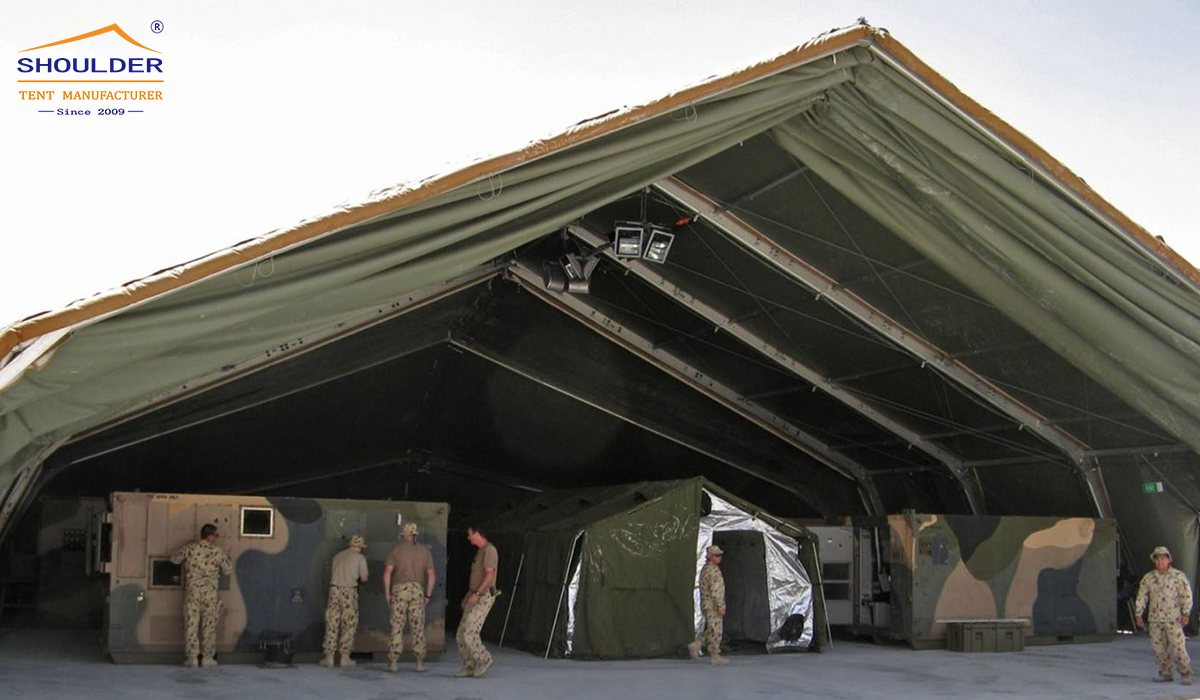 For many military units and military bases, they often need temporary storage space to store military supplies and military equipment, and Shoulder's aluminum alloy storage tent can play a very important role. The top cover of the warehouse storage tent is made of special The treated PVC tarpaulin is anti-ultraviolet, moisture-proof, flame-retardant, and bad weather-proof. In a short period of time, it can provide temporary military storage tents for military troops.