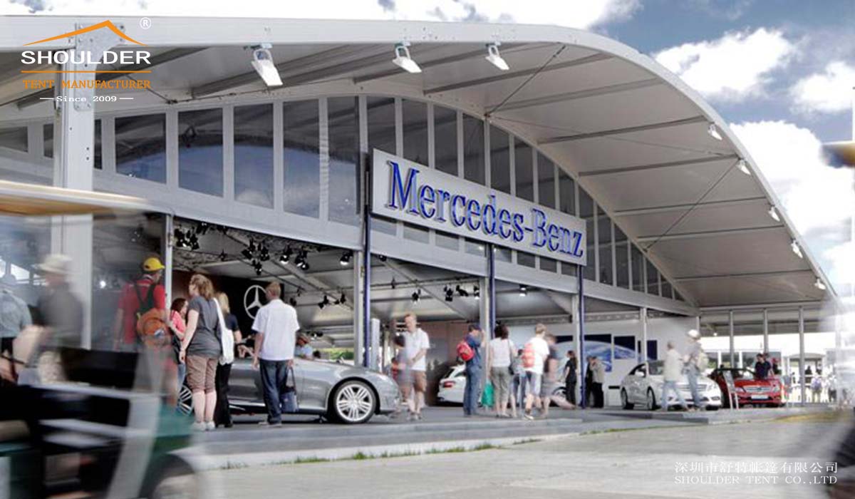 shoulder tent manufacturer undertakes a large commercial auto show tent. This project is the only large-scale auto show held every year in Europe, and it is the most important display platform for new products launched by auto merchants for the first time. The exhibition area is held in an outdoor exhibition hall of more than 90,000 square meters. Although the area is not large, it is a tent for displaying various luxury cars.