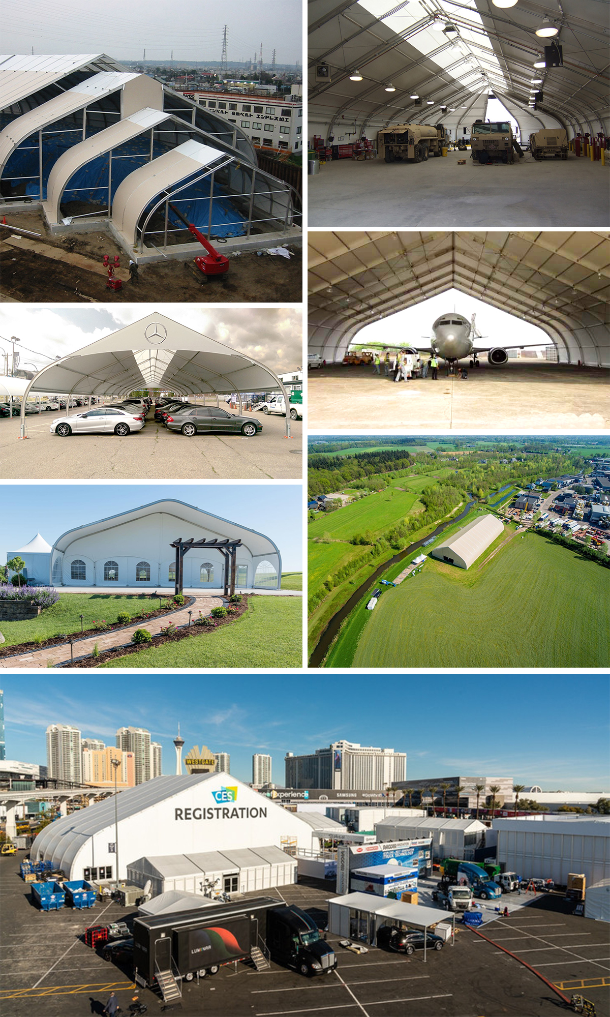 Aluminum tents can be used as long-term industrial storage and short-term industrial storage, and are also suitable for special engineering project construction. Our aluminum alloy tents can basically meet the different needs of various customers, and are widely used in logistics transit storage, aircraft storage, automobile storage, agricultural product storage and factory storage, etc.